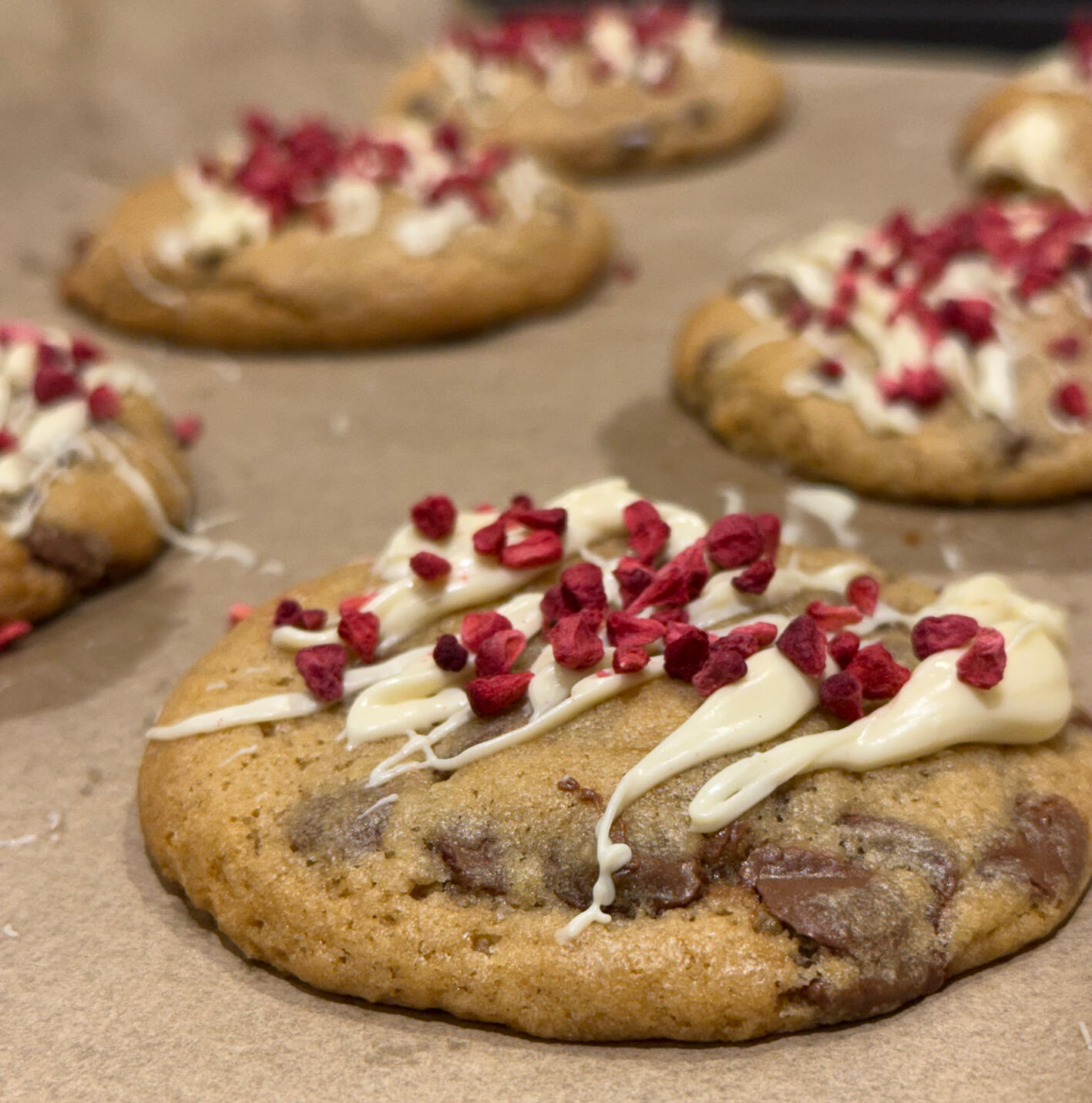 Soft, chewy and baked fresh to order. Flavours: White Chocolate & Raspberry, White Chocolate & Confetti, M&M’s, or Smarties.£20 per box, includes free deliverySelect your cookie flavour (in the notes) when making payment by clicking on the link below